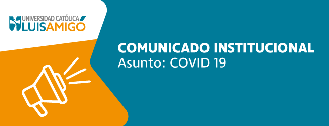 La Universidad Católica Luis Amigó, consciente de la importancia de la salud y el bienestar de toda la comunidad universitaria y de la necesidad de contención del Virus Covid19, ha venido informado a través de los canales institucionales, recomendaciones y pautas de buena higiene, con base en la información emitida por el Ministerio de Salud y Protección Social y por nuestra Aseguradora de Riesgos Laborales, Colmena ARL.